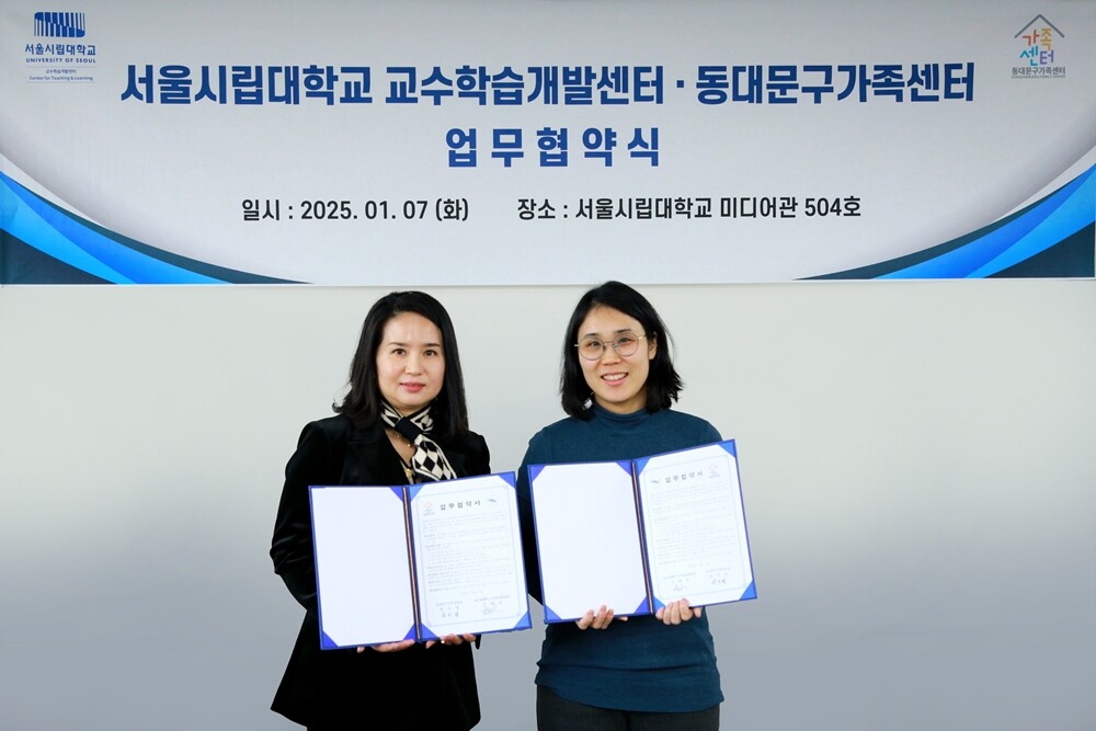 [대학저널 온종림 기자] 서울시립대학교 교수학습개발센터와 동대문구가족센터가 7일 서울시립대에서 지역사회 발전을 위한 업무협약(MOU)을 체결했다.