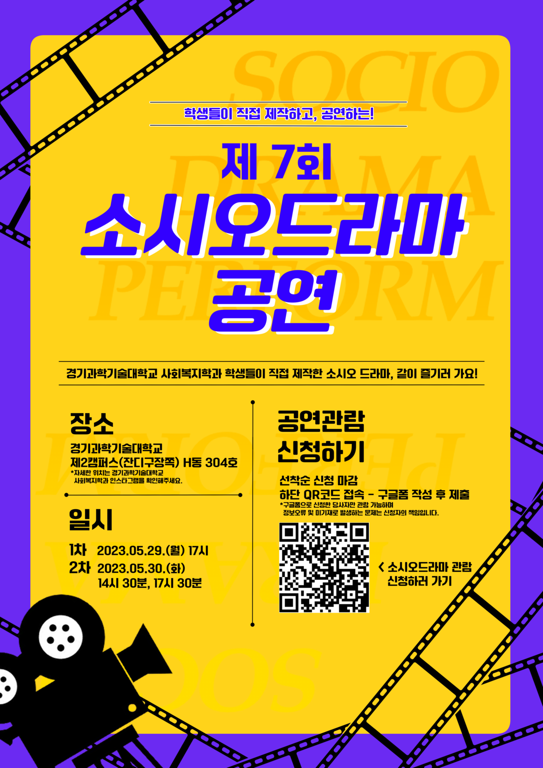 제7회 소시오 드라마는 경기과학기술대학교 사회복지학과의 정규 교과목으로 개설되어 있다. 특강 교육과정을 추가로 구성해 학생들이 직접 대본을 쓰고 배역을 맡아 실제 무대에서 공연한다.