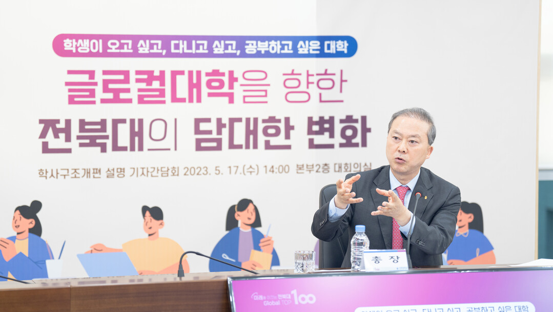 양오봉 전북대 총장은 17일 기자간담회를 열어 "글로컬대학 30 사업은 선택이 아니라 생존의 문제"라며 "뼈를 깎는 마음으로 대학의 체질을 바꿔 학생 중심의 대학을 반드시 만들겠다"고 밝혔다.