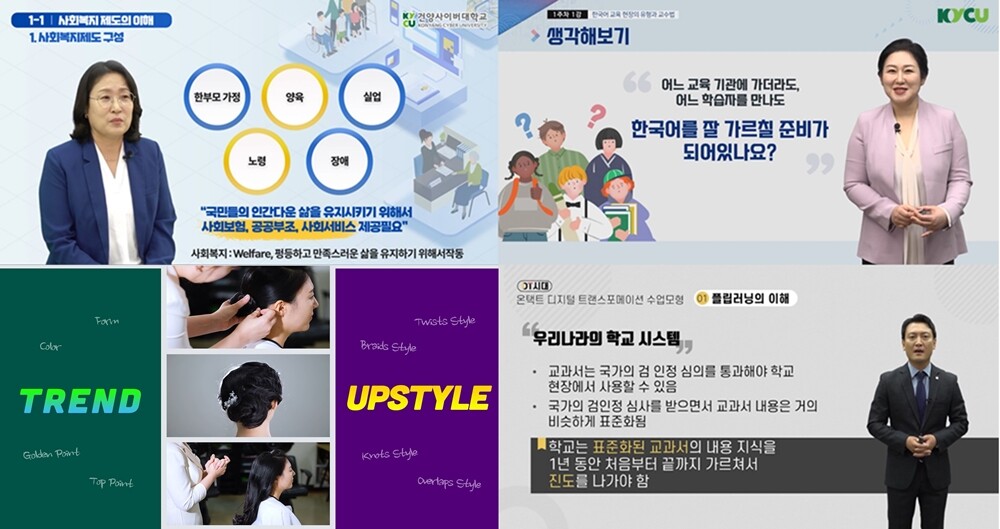 개별강좌는 2022년 개발된 박선아 사회복지상담학과 교수의 ‘사회복지 회계행정의 이해’와 이진경 다문화한국어학과 교수의 ‘현장 중심 Proto-Typing 기반 한국어 교수법’등 2개 강좌이며, 학점은행제 강좌는 2023년 재평가 인정을 받은 임옥진 글로벌뷰티학과 교수의 ‘응용업스타일’, 최동연 온라인평생교육학과 교수의 ‘효과적인 성인 교육 방법’과 2024년 신규 평가 인정을 받은 박선아 사회복지상담학과 교수의 ‘사회복지 시설운영론’등 3개 강좌이다.