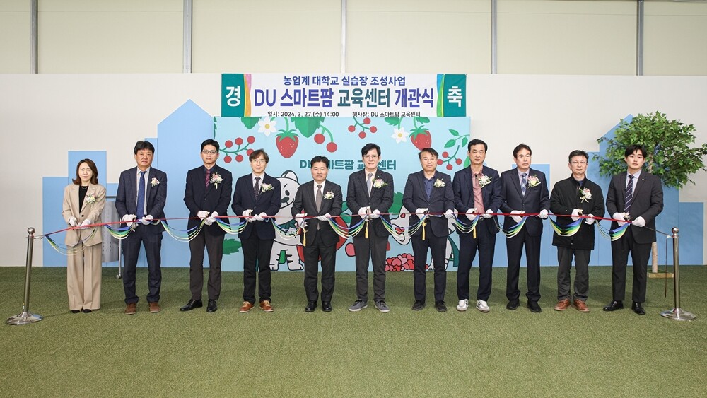 대구대는 지난 27일 경산캠퍼스 과학생명융합대학 서편에 위치한 DU스마트팜 교육센터에서 개소식을 개최했다. 이날 행사에는 대구대와 경산시, 영천시, 의성군, 대구농업마이스터고, 경북바이오마이스터고 등 관계자들이 참석했다.