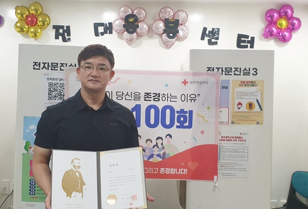 [대학저널 온종림 기자] 호남대학교 한국어학과 안현수 교수가 100회 헌혈을 실천, 헌혈문화 확산에 기여한 공로로 대한적십자사 헌혈유공장(명예장)을 28일 받았다.