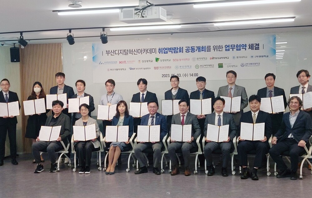 부경대 등 15개 대학은 3일 부산 센텀벤처타운 2층 ICT COA에서 부산디지털혁신아카데미 취업박람회 공동개최 업무협약을 체결했다.