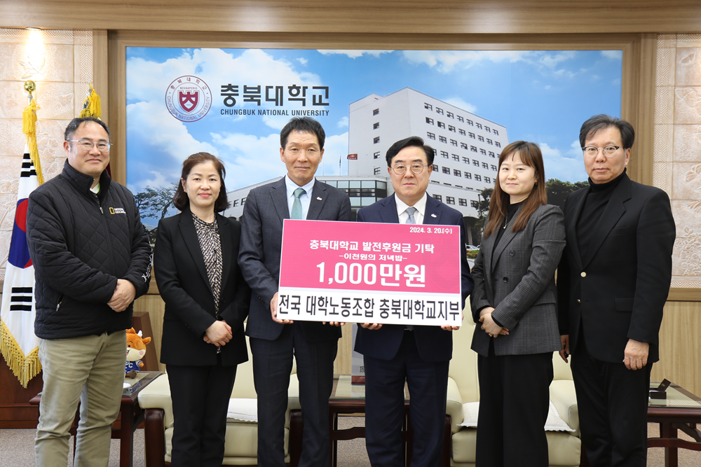 김진우 전국대학노동조합 충북대학교지부장은 “밤이 늦도록 열심히 공부하는 충북대 학생들에게 건강한 저녁식사와 경제적 부담 경감을 위해 전국대학노동조합 충북대지부 조합원의 성의를 모아 이천원의 저녁밥 모금캠페인에 동참한다”며 기탁의 뜻을 밝혔다.