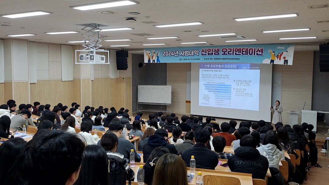 이번 설명회에서는 신입생들에게 선배들의 취업현황과 취업준비 방법, 진로취업부 소개 및 프로그램 정보 등 다양한 정보를 제공했다.