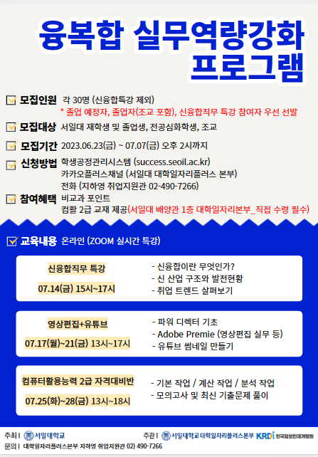 | 서일대학교에서 열린 '융복합 실무역량강화프로그램' 포스터. 자료=서일대 제공 |