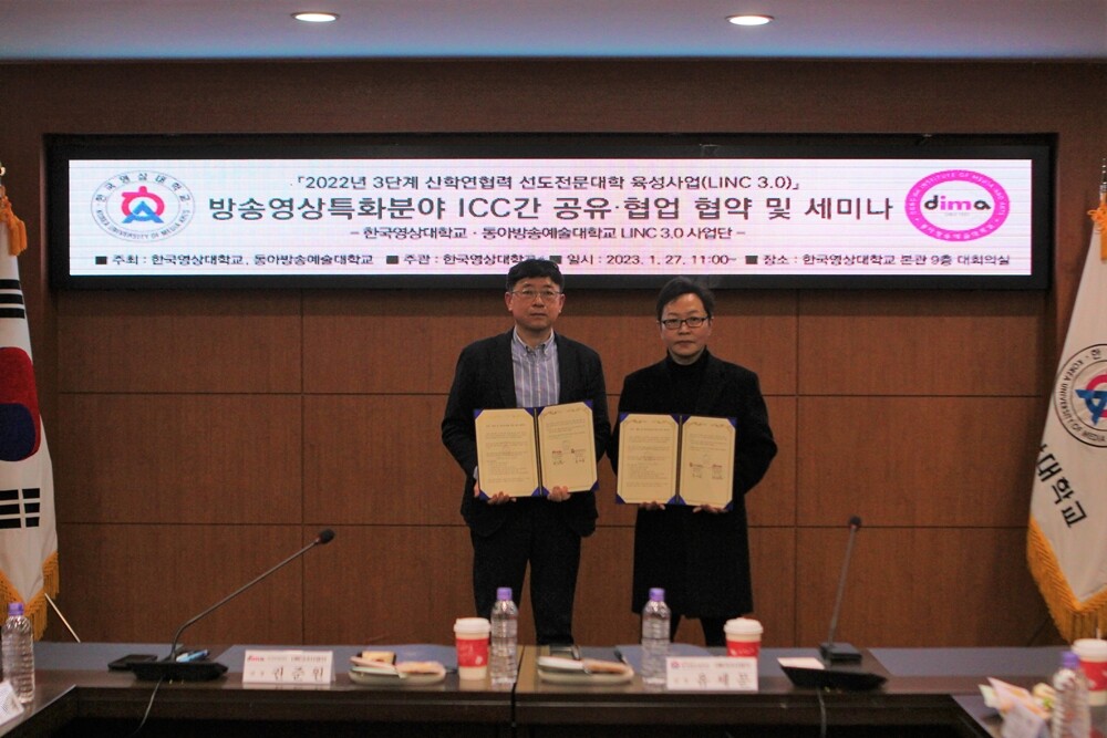 [대학저널 온종림 기자] 한국영상대학교는 LINC3.0사업단이 동아방송예술대학교와 특화분야 ICC 간 공유협업 생태계 조성과 활성화를 위한 업무협약을 체결했다고 27일 밝혔다.