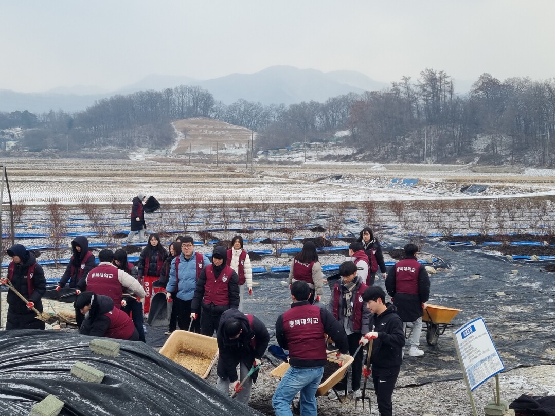 [대학저널 온종림 기자] 충북대학교 농업생명환경대학 학생 40여 명이 지난 20일과 21일 청주시 가덕면 인차리 일원에서 영하의 날씨에도 불구하고 농촌봉사활동을 통해 농촌에 따뜻한 활기를 더했다.