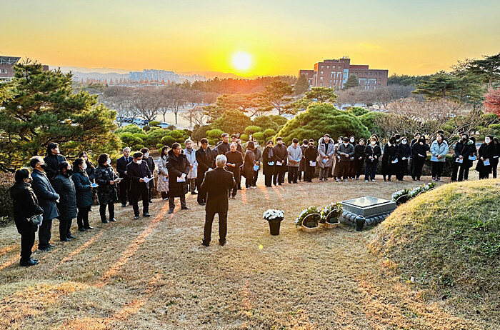 경북영광학교가 지난 11월 28일 창파 이태영 총장의 28주기 추도식을 故 이태영 총장 묘소에서 가졌다. 사진=대구대 제공 |