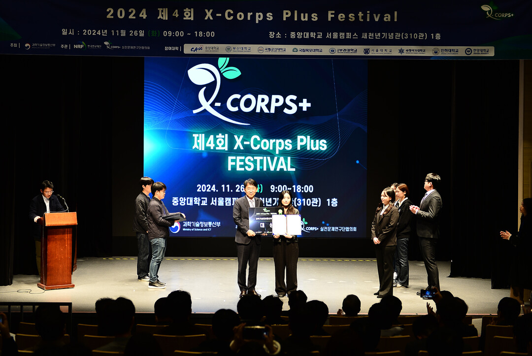 [대학저널 이선용 기자] 국립부경대학교 실전문제연구단의 ‘유니부경’ 팀이 최근 중앙대 서울캠퍼스 새천년기념관에서 열린 ‘2024 X-corps+페스티벌’에서 대상을 수상했다.