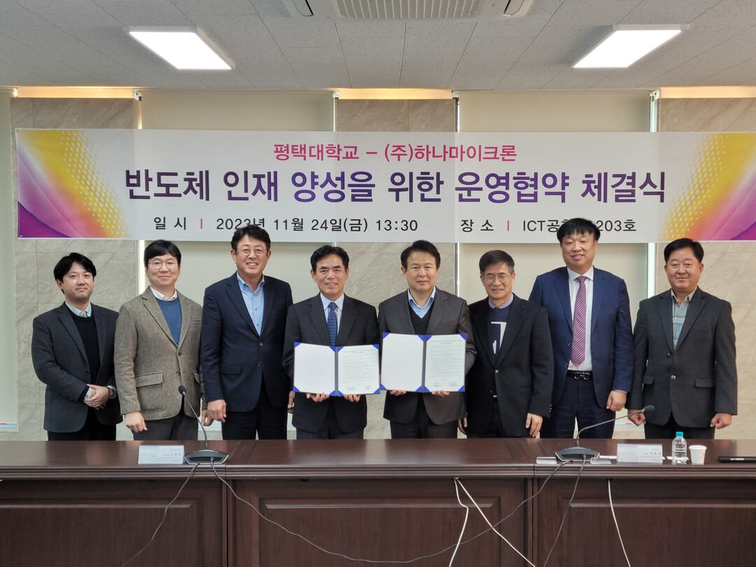 [대학저널 온종림 기자] 평택대학교가 24일 하나마이크론㈜와 반도체 인재 양성을 위한 ‘반도체디스플레이장비운영계약학과’ 공동운영을 위한 업무협약식을 개최했다.