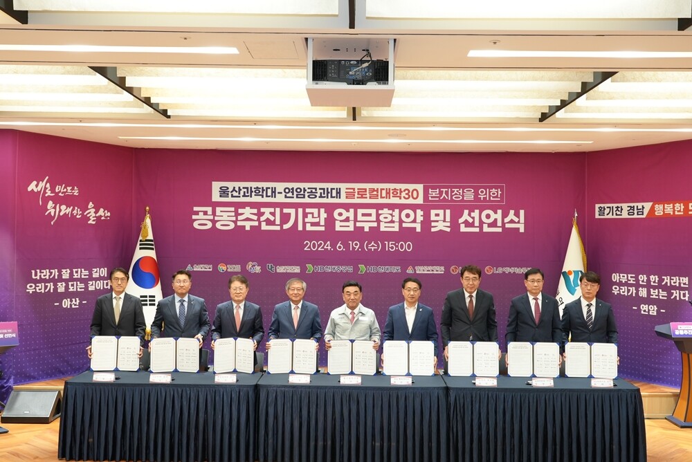 [대학저널 온종림 기자] 연암공과대학교-울산과학대학교 연합대학은 19일 울산시의회 1층 시민홀에서 ‘글로컬대학30 본지정’을 위한 울산광역시, 경상남도, 그리고 공동추진기관과의 업무협약 및 선언식을 개최했다.