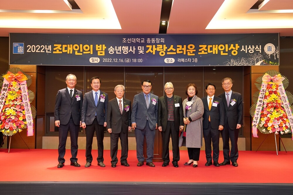[대학저널 온종림 기자]조선대학교 총동창회가 지난 16일 라페스타 웨딩홀에서 ‘2022 정기총회’를 열고 올해의 ‘자랑스러운 조대인상’ 시상식을 가졌다.