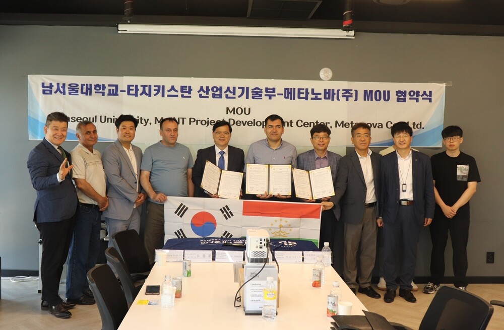 [대학저널 온종림 기자] 남서울대학교가 용산 전자랜드 회의실에서 타지키스탄 정부 및 메타노바(주) 기업과 글로벌 융합 협력을 위한 업무협약을 체결했다.