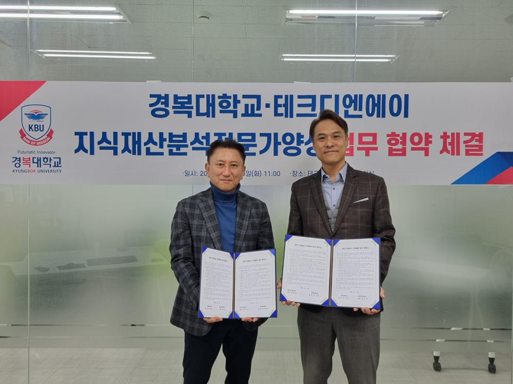 [대학저널 온종림 기자] 경복대학교가 19일 연구정보 빅데이터 전문기업 ㈜테크디엔에이와 지식재산분석 전문가 양성을 위한 업무협약을 체결했다. 협약식에는 경복대 조상구 빅데이터학과장과 (주)테크디엔에이 배진우 대표 등 관계자가 참석했다.