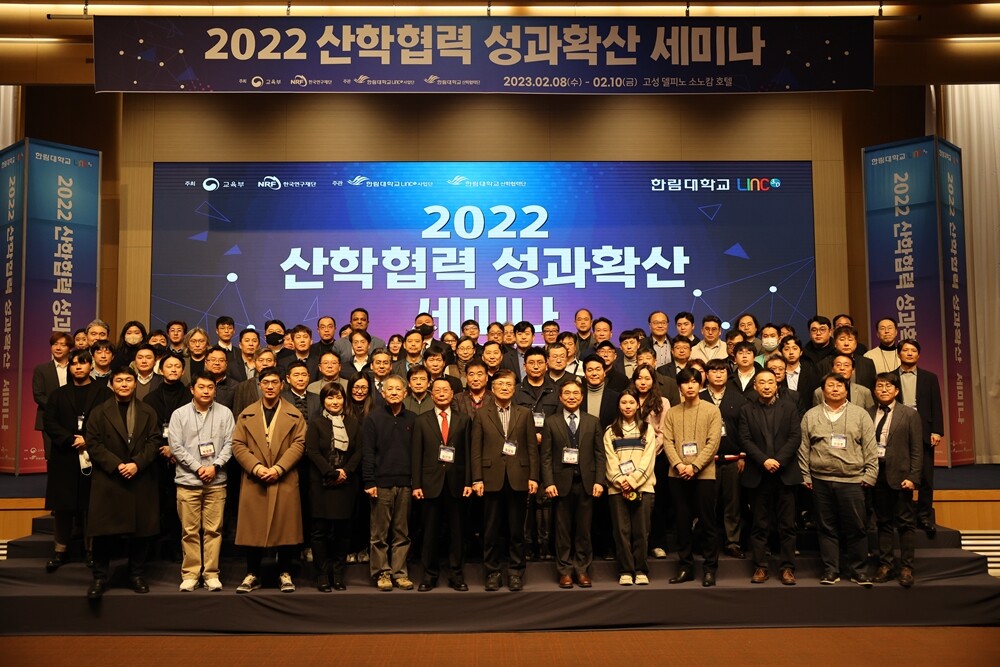 8~10일 한림대가 가족회사를 대상으로 실시하고 있는 산학협력 성과확산 세미나 및 재직자 교육 참석자들이 기념촬영을 하고 있다. 사진=한림대 제공