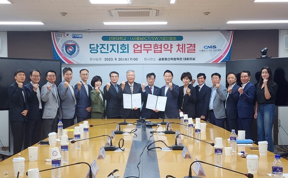 [대학저널 온종림 기자] 선문대학교와 (사)충남ICT/SW기업인협회 당진지회가 20일 선문대 글로컬산학협력관 대회의실에서 지역 인력난 해소를 위한 멘토링 및 중소기업 핵심 기능 인력 양성을 주 내용으로 하는 업무 협약을 체결했다.
