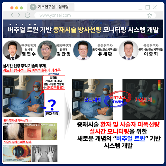 연구책임자인 염연수 교수는 한양대 원자력공학과 김찬형 교수, 연세대 원주의과대학 유세환 교수(방사선종양학과) 및 이중희 교수(심장내과)와 협력하여 향후 3년간 총 13.5억 원의 연구비를 지원받아 「버추얼 트윈 기반 중재시술 방사선량 모니터링 시스템 개발」에 나선다.
