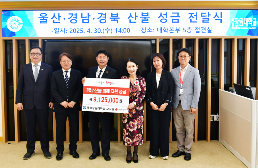 이번 성금은 산불 피해 이재민을 돕기 위해 교직원들의 자발적 참여로 조성됐다. 국립창원대는 지난 10일부터 18일까지 교수, 직원, 조교 등 대학 구성원 137명이 성금 모금에 적극 동참했다.