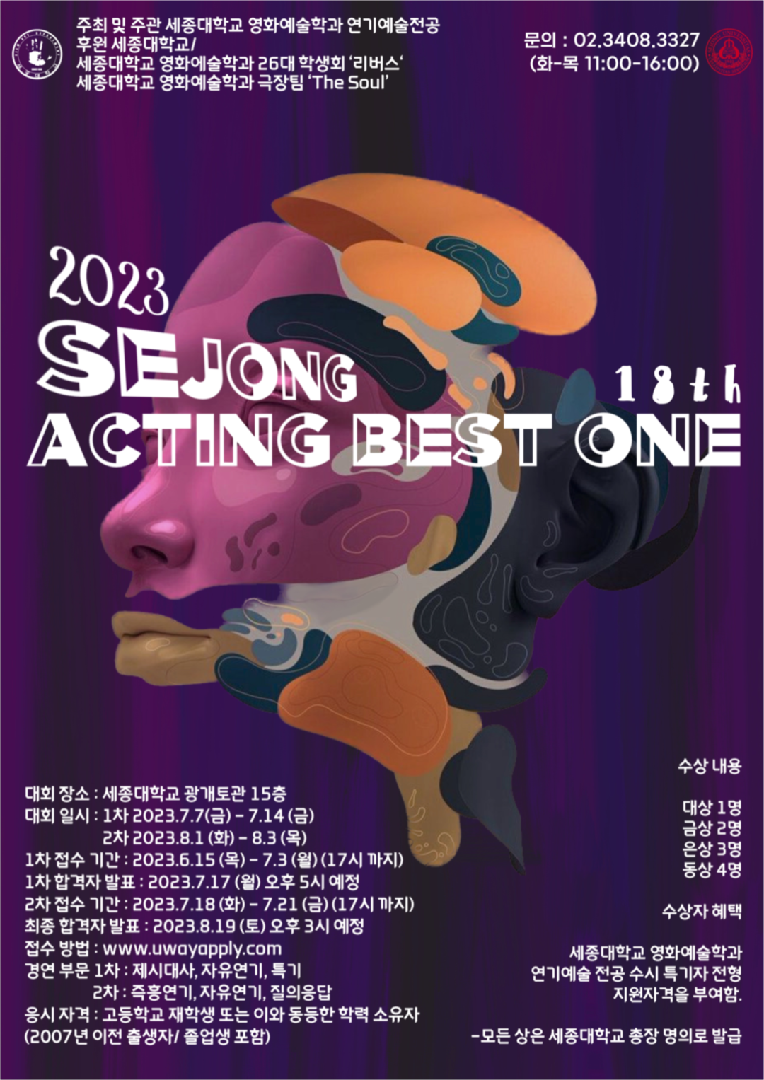올해로 18회를 맞이한 ‘세종액팅베스트원’의 1차 접수 기간은 7월 3일 오후 5시까지다. 2차 접수 기간는 7월 18일부터 21일 오후 5시까지다.