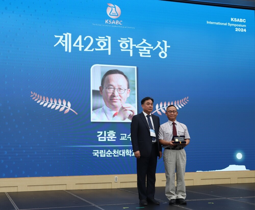 국립순천대 김훈 교수가 2024년도 (사)한국응용생명화학회 국제학술대회에서 제42회 ‘학술상’을 수상했다. 사진=국립순천대 제공 |