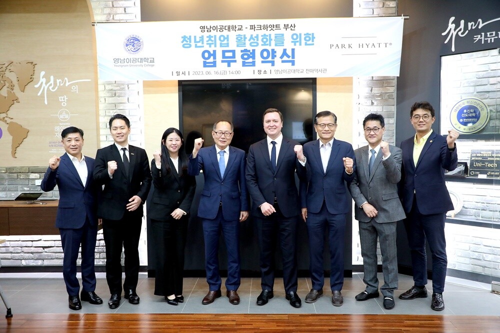 영남이공대 이재용 총장은 “파크하얏트부산과의 협약이 재학생들의 호텔, 항공, 관광, 서비스 분야 취업 역량 강화에 많은 도움이 되길 기대한다”라며 “기업 맞춤형 교육과정 개발, 현장 실무 중심 교육, 인턴십 프로그램, 현장실습 등을 통한 글로벌 관광 서비스 분야 전문 인재 양성에 최선을 다하겠다”고 말했다.