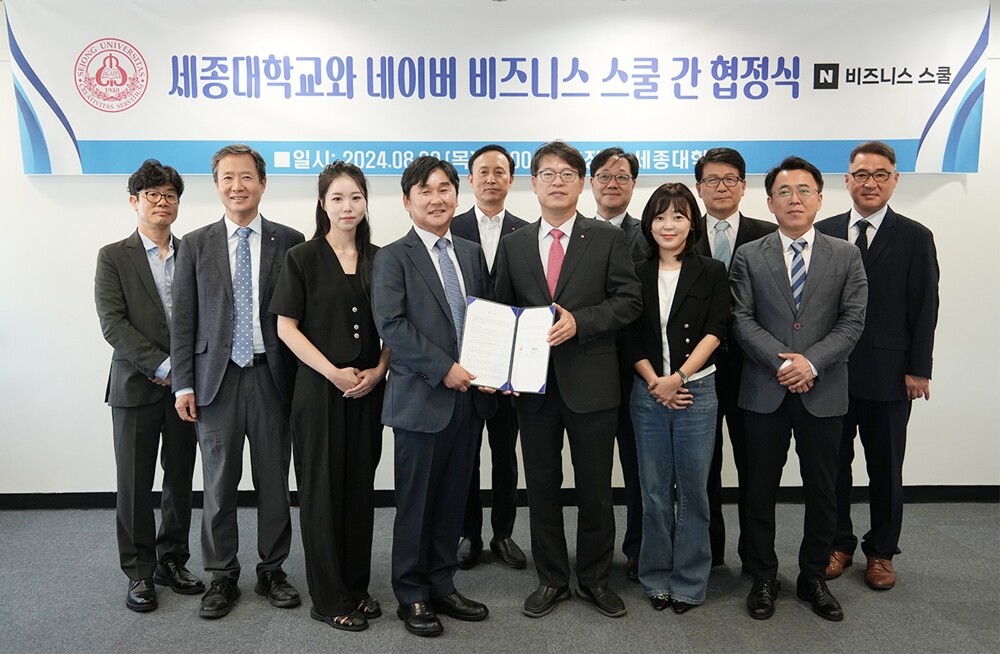 [대학저널 온종림 기자] 세종대학교가 지난 8월 29일 교내 집현관 10층 소회의실에서 네이버 비즈니스 스쿨과 교류 및 협력을 위한 협약을 체결했다.