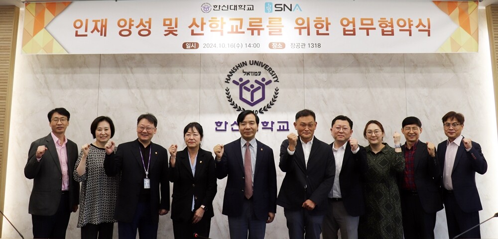 [대학저널 온종림 기자] 한신대학교 대학일자리플러스센터가 ㈜SNA(대표 이원호)와 16일 경기캠퍼스 장공관 3층 1318 회의실에서 인재 양성 및 산학교류를 위한 업무 협약을 체결했다. 이번 협약은 김용희 대학일자리플러스센터장이 가장 큰 역할을 한 것으로 알려졌다.