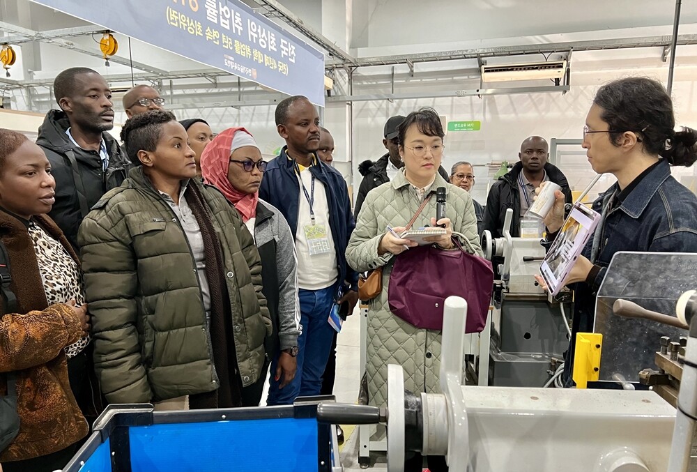 르완다 직업훈련 종사자 연수생들이 한기대 K-팩토리, 다담 창의센터 등을 방문하여 현장 실습 및 견학을 하는 모습. 사진=한기대 제공 |