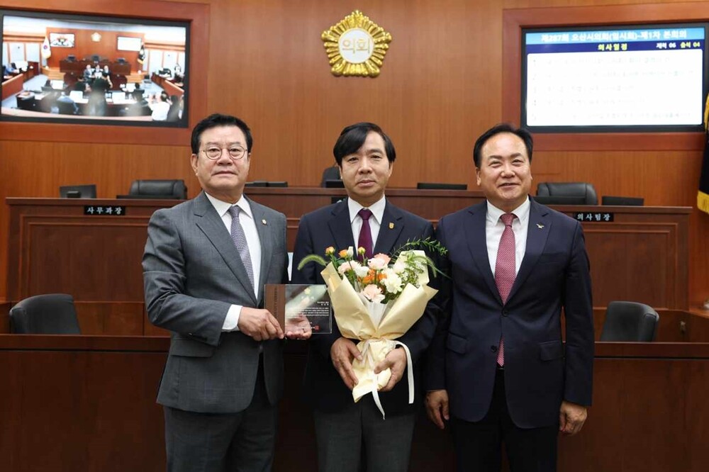 [대학저널 온종림 기자] 한신대학교 강성영 총장이 2일 오산시의회 5층 본회의장에서 열린 제287회 임시회에서 ‘오산시의회 명예의장’으로 위촉됐다.