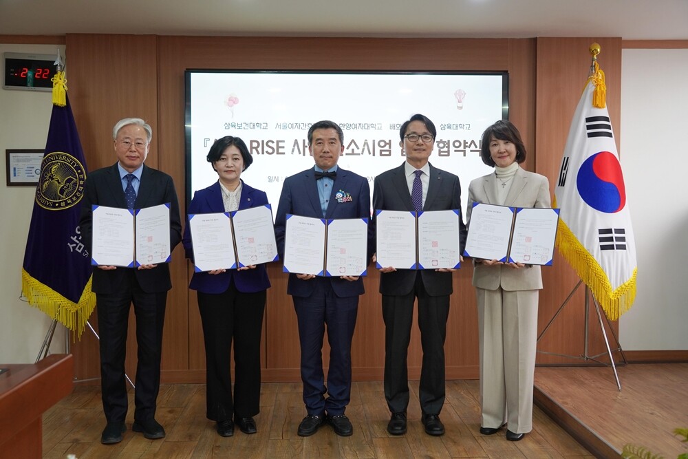 [대학저널 온종림 기자] 삼육보건대학교가 12일 서울 RISE사업 컨소시엄 업무 협약식을 개최했다. 이번 협약식은 서울 RISE사업 11개 과제 중 ‘서울 미래키움 교육지원 생태계 구축’에 참여하기 위한 컨소시엄을 조직하는 자리로, 삼육보건대학교를 비롯해 총 5개 대학의 총장과 RISE사업단장 등 주요 관계자들이 참석했다.