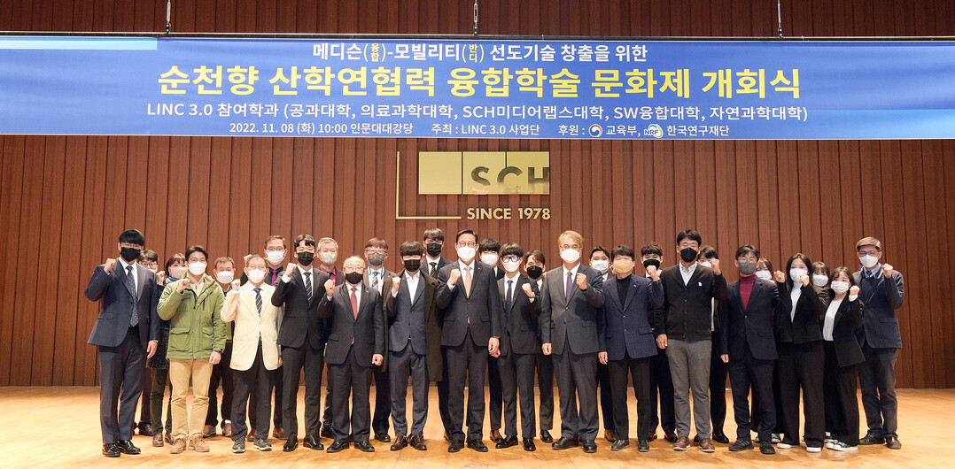 이번 융합학술문화제는 순천향대 LINC3.0사업단이 후원한 가운데, 단과대학별 다른 일정으로 진행되었던 지난 학술제와는 달리, 메디슨(Medicine)과 모빌리티(Mobility)로 대표되는 대학과 지역의 특화 분야를 이끄는 공과대, 의료과학대, 자연과학대, SCH미디어랩스, SW융합대학 등 5개 단과대학이 공동 참여해 다양한 산학연협력 성과를 전시, 발표하는 형식으로 진행됐다.