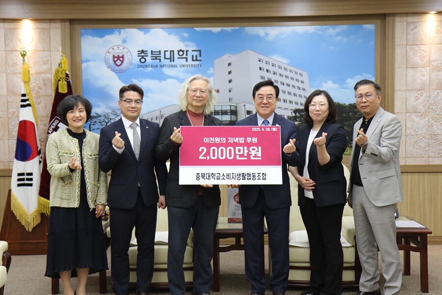 [대학저널 온종림 기자] 충북대학교 소비자생활협동조합이 28일 ‘이천원의 저녁밥’에 써달라며 발전기금 2천만원을 전달했다.