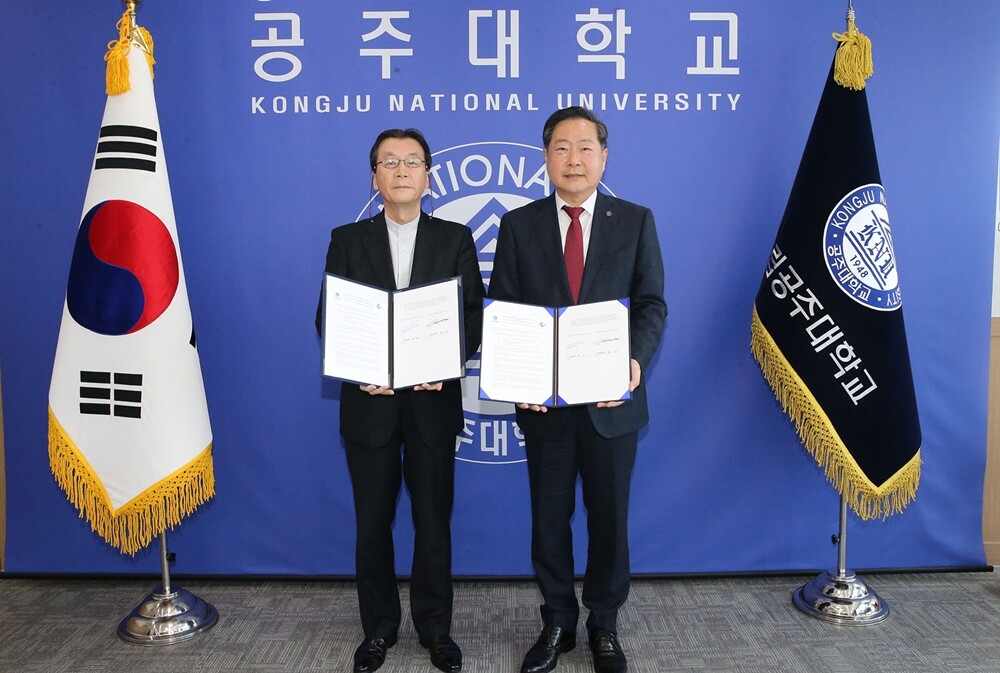[대학저널 온종림 기자] 공주대학교가 16일 총장접견실에서 일본 오카야마현 오카야마시에 있는 주고쿠가쿠엔대학교(中国学園大学)와 교수 및 학생교류, 공동연구 등 글로벌 캠퍼스 구축을 위한 학술교류협정을 체결했다.