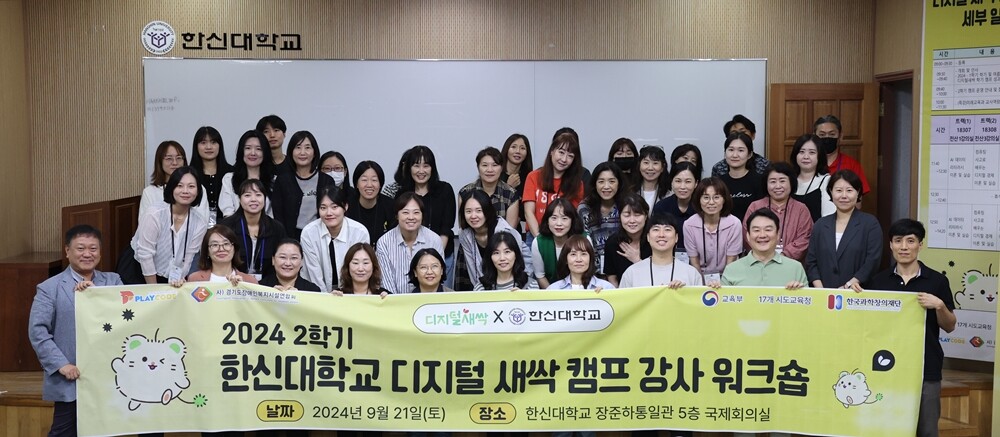 ‘2024학년도 2학기 디지털새싹 캠프 코딩 강사 워크숍’ 참석자들이 단체 사진을 찍고 있다. 사진=한신대 제공 |
