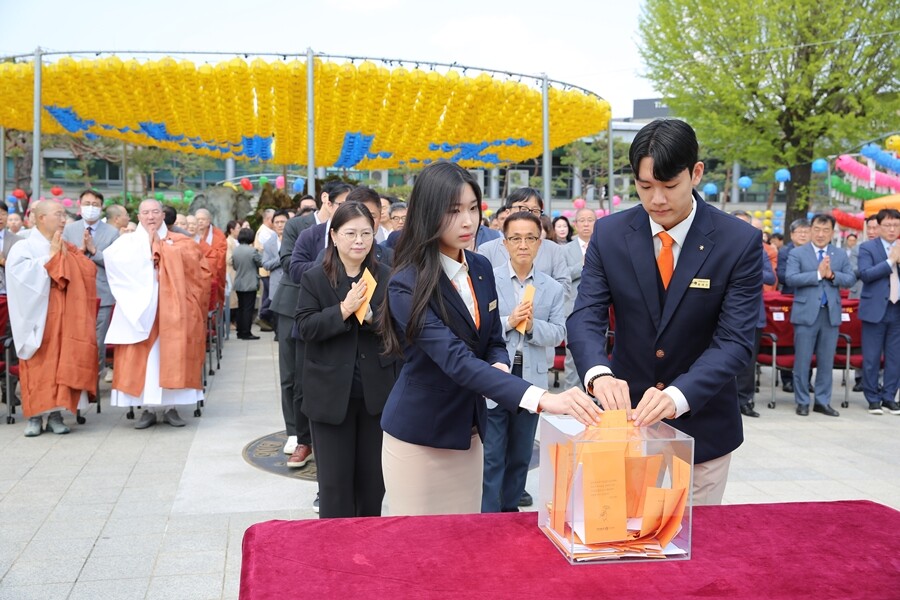 한편, 이날 진행된 발원법회에는 학교법인 이사장 돈관스님, 윤재웅 동국대 총장, 정각원장 제정스님 등 학교 주요 관계자들이 함께 자리했으며, 발원에 참여한 교수, 학생, 직원 등 총 300여 명이 함께 참석했다.