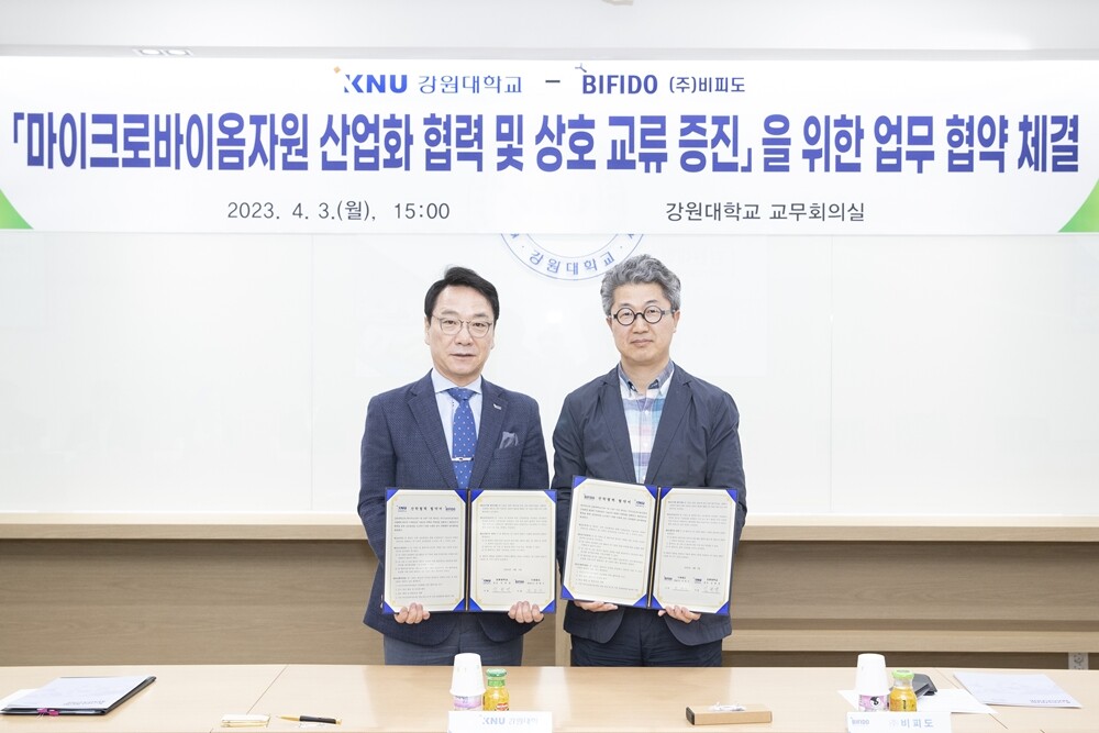 [대학저널 온종림 기자] 강원대학교는 3일 비피도와 마이크로바이옴 자원 산업화 협력 과 상호 교류 증진을 위한 업무협약을 체결했다.