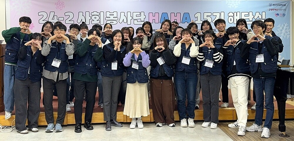 2024학년도 2학기 사회봉사단 ‘HAHA’ 15기 해단식 후 단체 사진을 찍고 있다. 사진=한신대 제공 |