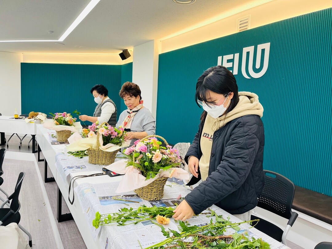 원예치료 집단상담은 ‘다양한 꽃을 활용하여 꽃바구니 만들기’란 주제로 진행됐다. 학생들은 꽃바구니를 만들면서 서로 간에 학업에 대한 고민을 나누며 공감하는 시간을 가졌다.