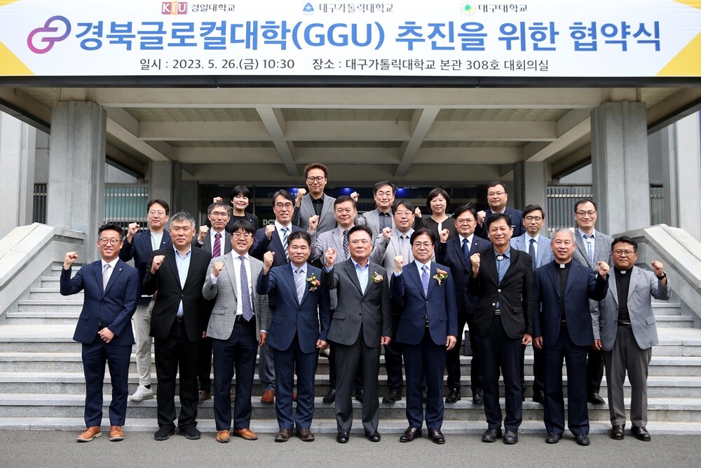 [대학저널 온종림 기자] 경일대학교와 대구가톨릭대학교, 대구대학교가 26일 대구가톨릭대 본관에서 경북글로컬대학(GGU, Gyeongbuk Glocal University) 추진을 위한 협약을 체결했다.