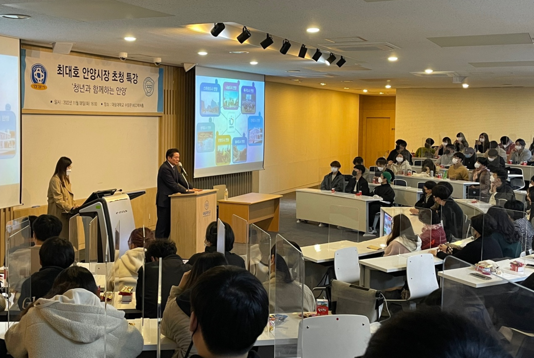 [대학저널 온종림 기자]최 시장은 이날 대림대 총장, 교수 및 학생 150여 명이 모인 가운데 ‘청년과 함께하는 안양’이란 주제로 특강이 했다.