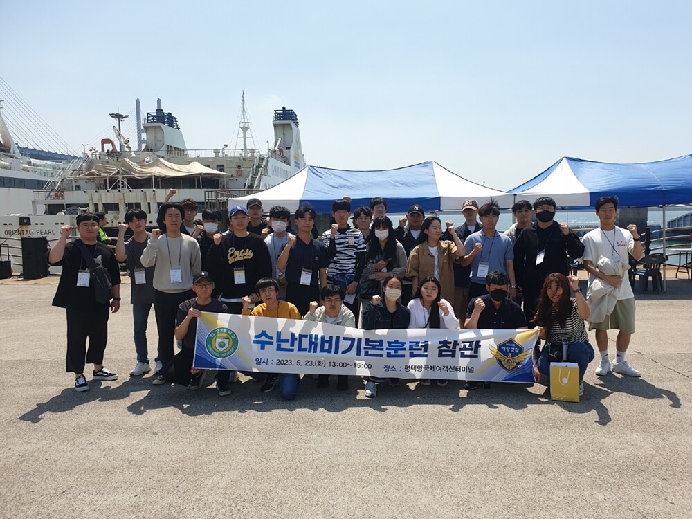 [대학저널 온종림 기자] 신성대학교는 24일 안전관련학과 학생 45명이 전날 평택항 국제여객터미널에서 실시한 2023년 2차 민관 합동 수난대비 기본훈련에 참가했다고 밝혔다.