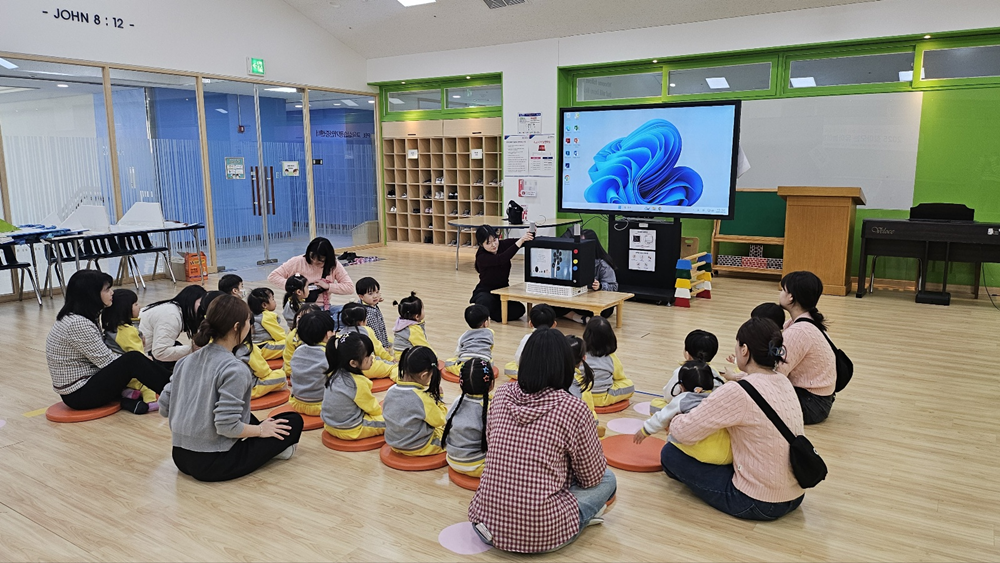 다문화 그림책을 활용한 인성놀이에 몰입한 영유아들. 사진=경복대 제공 |