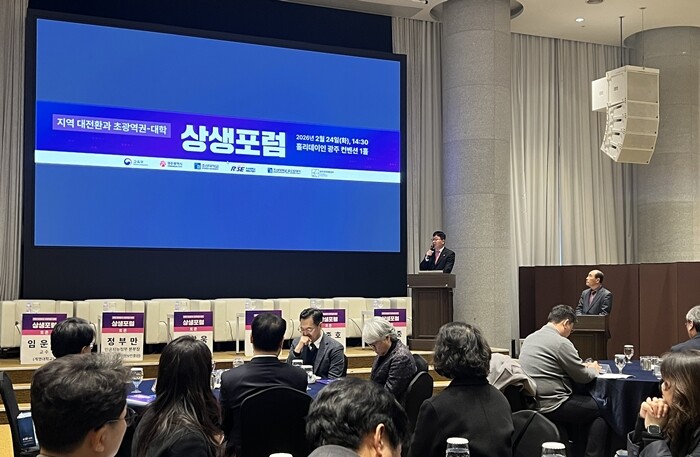 [대학저널 온종림 기자] 조선대학교 RISE사업단이 광주광역시, 광주경영자총협회와 함께 24일 홀리데이인 광주 컨벤션홀에서 「지역 대전환과 초광역권-대학 간 상생 포럼」을 개최하고, 광주·전남 산업구조 대전환에 대응하는 초광역 협력 전략과 대학의 역할을 심도 있게 논의했다.