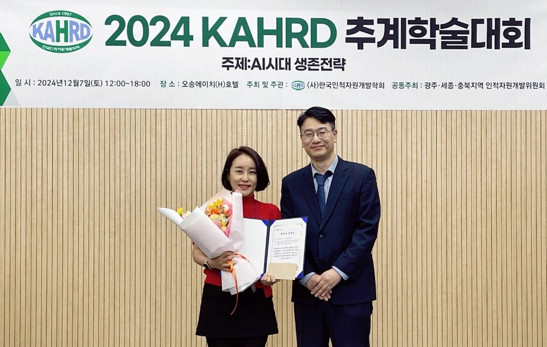 [대학저널 온종림 기자] 호남대학교 경영학부 장은미 교수가 일 오송에이치 호텔에서 열린 ‘2024 KHARD 추계학술대회’에서 2024년 한국인적자원개발학회가 선정한 '올해의 최우수논문상'을 수상했다.