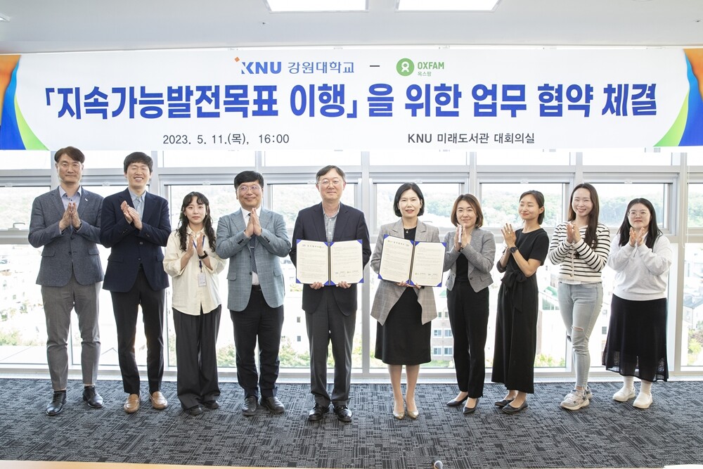 [대학저널 온종림 기자] 강원대학교가 11일 춘천캠퍼스에서 국제구호개발기구 ‘옥스팜 코리아’와 ‘지속가능발전목표(SDGs) 이행을 위한 업무협약’을 체결했다.