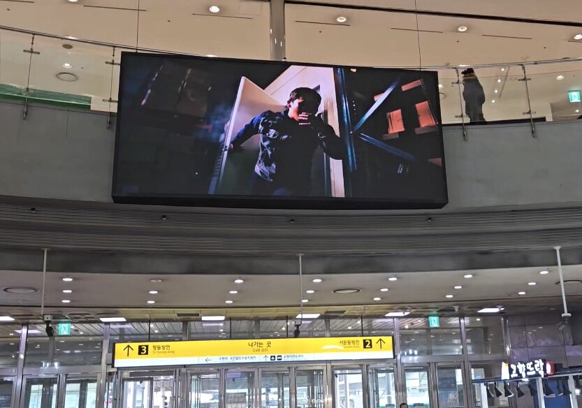 수원역사 내 대형플랫폼에서 송출되는 공익광고 ‘그날 우린 아무도 듣지 않았다.’. 사진=서울예대 제공 |
