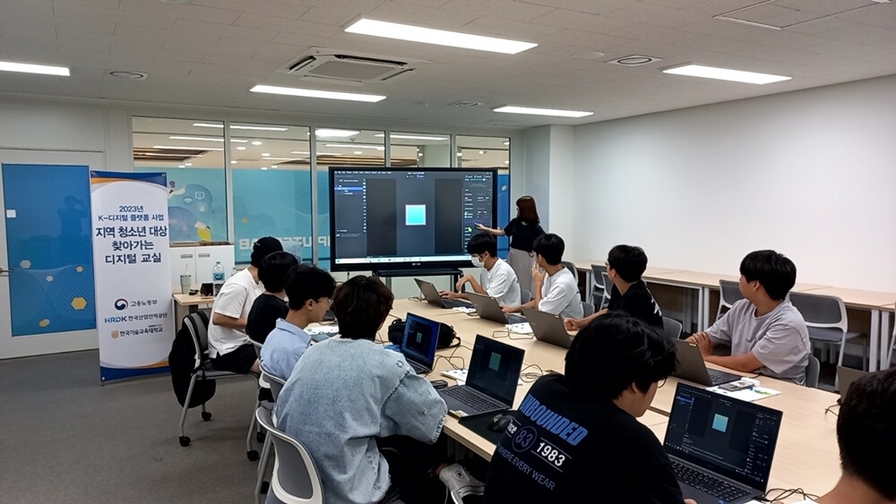 2023년 한기대의 지역 청소년 대상 ‘찾아가는 디지털 교실’ 운영 모습. 사진=한기대 제공 |