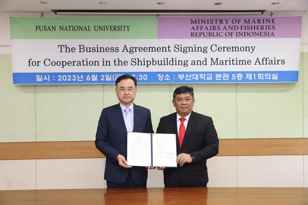 부산대 차정인 총장은 2일 빅토르 구스타프 마노포(Victor Gustaaf Manoppo) 인도네시아 해양수산부 해양공간관리청장(Director General for Marine Spatial Management)과 ‘조선해양분야 협력을 위한 업무 협약’을 체결하고 한·인니 양국의 조선해양분야 협력 방안에 함께 뜻을 모아 추진해 나가기로 했다.