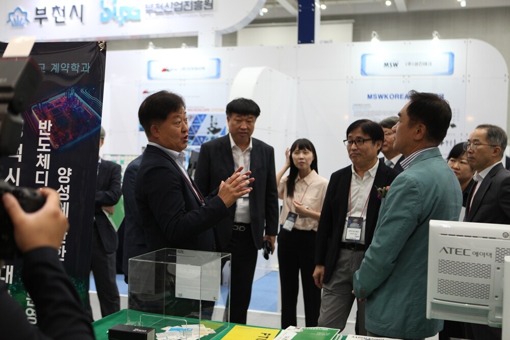 이날 평택대 부스를 방문한 정장선 평택시장은 “평택시 및 관내의 기업체들과 평택대학교의 다양한 협업을 기대하며, 평택시 미래 산업의 발전과 지역의 반도체 인재 양성을 위해 힘써달라”고 밝혔다.